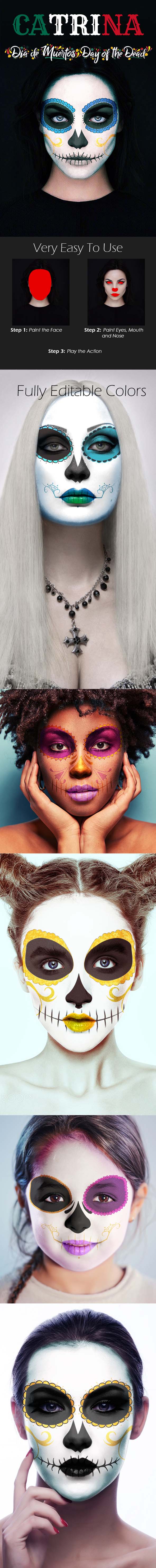 Catrina Skull Photoshop Action-for creating Catrina Makeup Digitally to your images. Create Amazing skull Portrait Effect in photoshop easily within minutes.